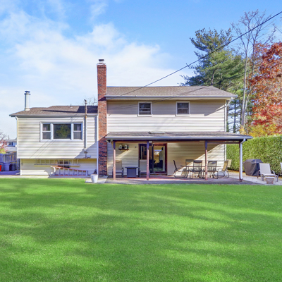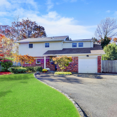 Lovely well maintained 4 Br, 2.5 Bth Splanch w/separate home ofc, spacious EIK w/SS appliances,DR, LR, Den and bonus rm. Newer: CAC, Andersen windows, Gas Burner and roof. Just move right in and enjoy the beautiful flat .27 acre, fully fenced property with pretty laurels, zoza grass, porch, patio. Conveniently located, close to schools, shops, parks, LIRR and parkways!