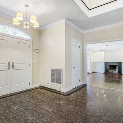 Gorgeous and Stately, Brick, Center Hall, Colonial Style home, with over 6500 sq ft of living area, featuring 6 oversized bedrooms, Oversized Living room w/fplc, 5.5 bathrooms, 2 story dressing room, full basement, 4-car garage, on flat, 2.06 flat acres. Finished loft above garage, huge circular driveway, patio w/fplc, new roof etc, Private dead end street location. Renovated and move in condition.