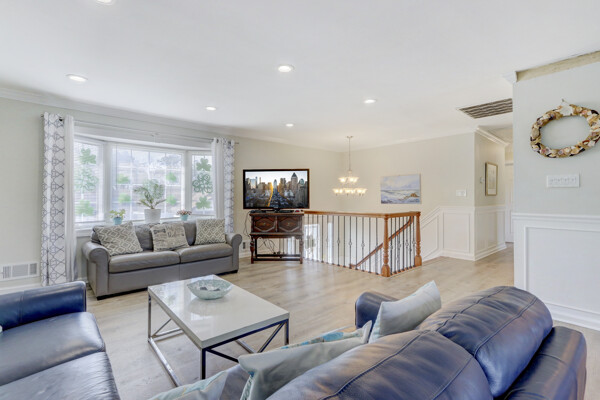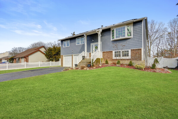 Fabulous Hi-Ranch on 0.23 acre property-Offers many updates. Vinyl Hardwood floors throughout*updated Kitchen with Quartz Counter &SS Appliances*Wainscoting coating*Crown Moldings*Hi-Hats*updated windows and doors* Sliders with built in blinds*Roof(2yrs)*Cac(3Yrs)*200 Amp Elec* Gas Heat*Igs*Entertainment size back yard w Heated Salt Semi Inground Pool(As Gift) * Stone Rear Patio * Purchased Solar Panels.$150.00 Mth* Potential Mother Daughter with proper permits* Easy Access to LIE, Major Hwys *Shopping* Near by Country Club(Golf Course)